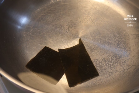 1. 물에 다시마 2조각을 넣고 끓여줍니다. 10분 정도 끓여줍니다.