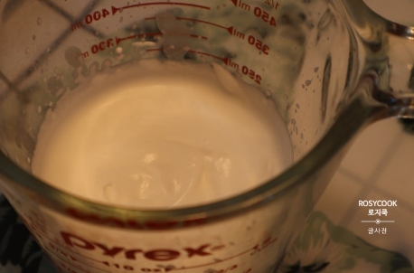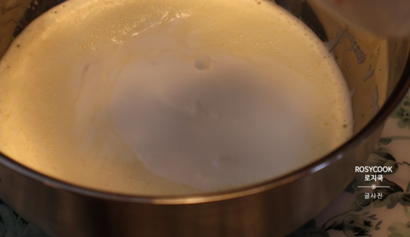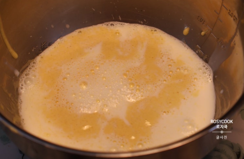 6. 준비해둔 계란 노른자에 우유를 부어서 잘 섞어줍니다.
