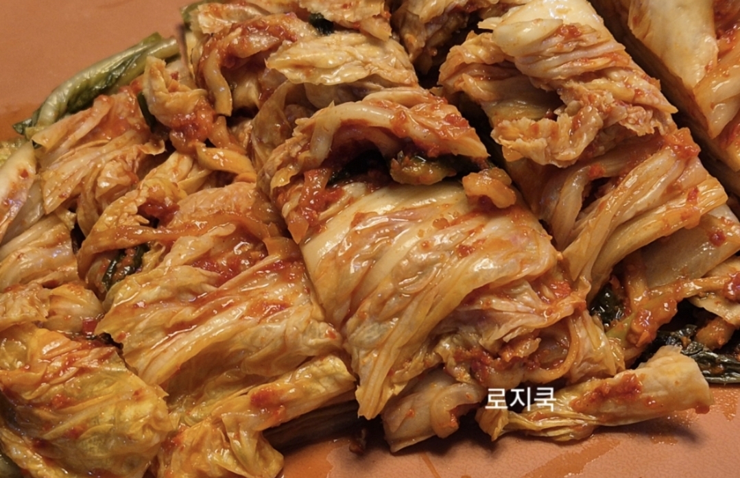 김치는 한입 크기로 잘라서 준비합니다.