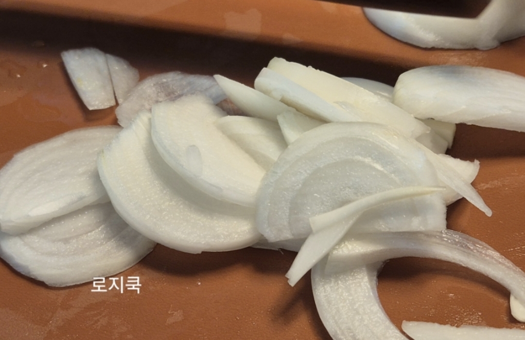 양파는 채 썰어 단맛을 내줍니다.