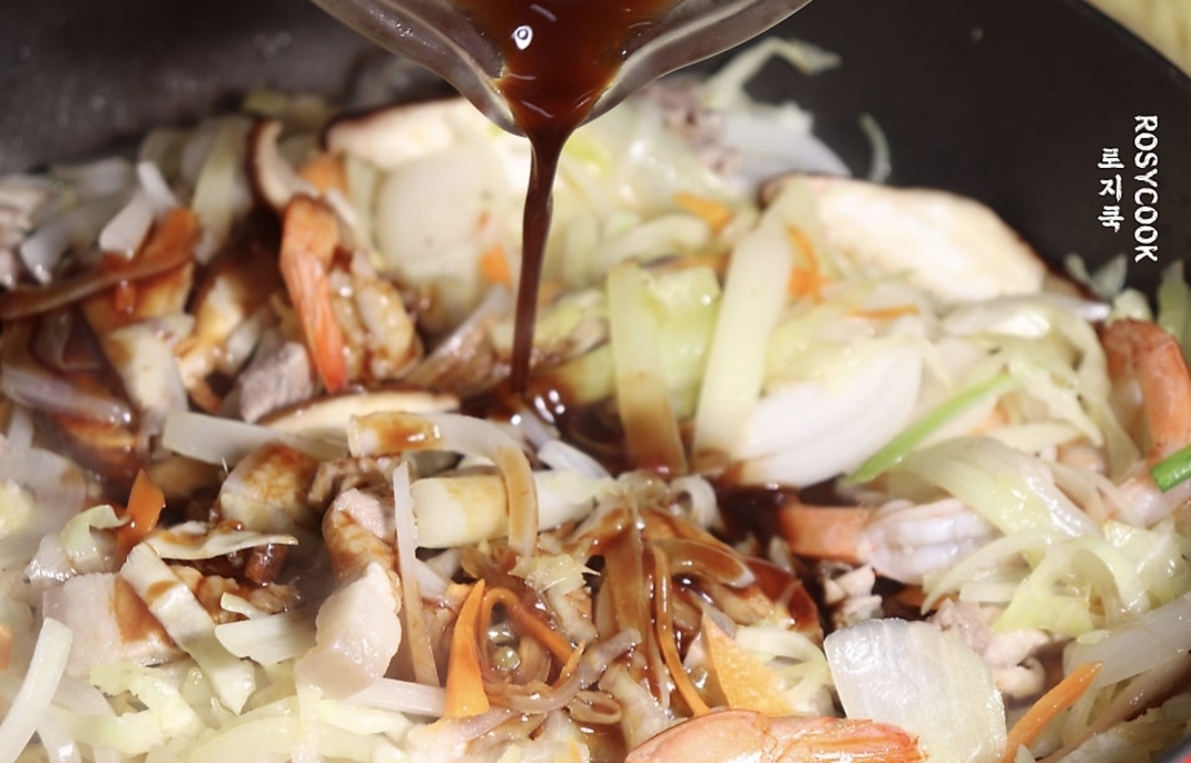 숙주와 부추는 살짝만 볶아주셔야 합니다. 특히 숙주는 많이 볶을수록 아삭함이 떨어지고 물이 생기기 때문에 빠르게 살짝 볶아줍니다.