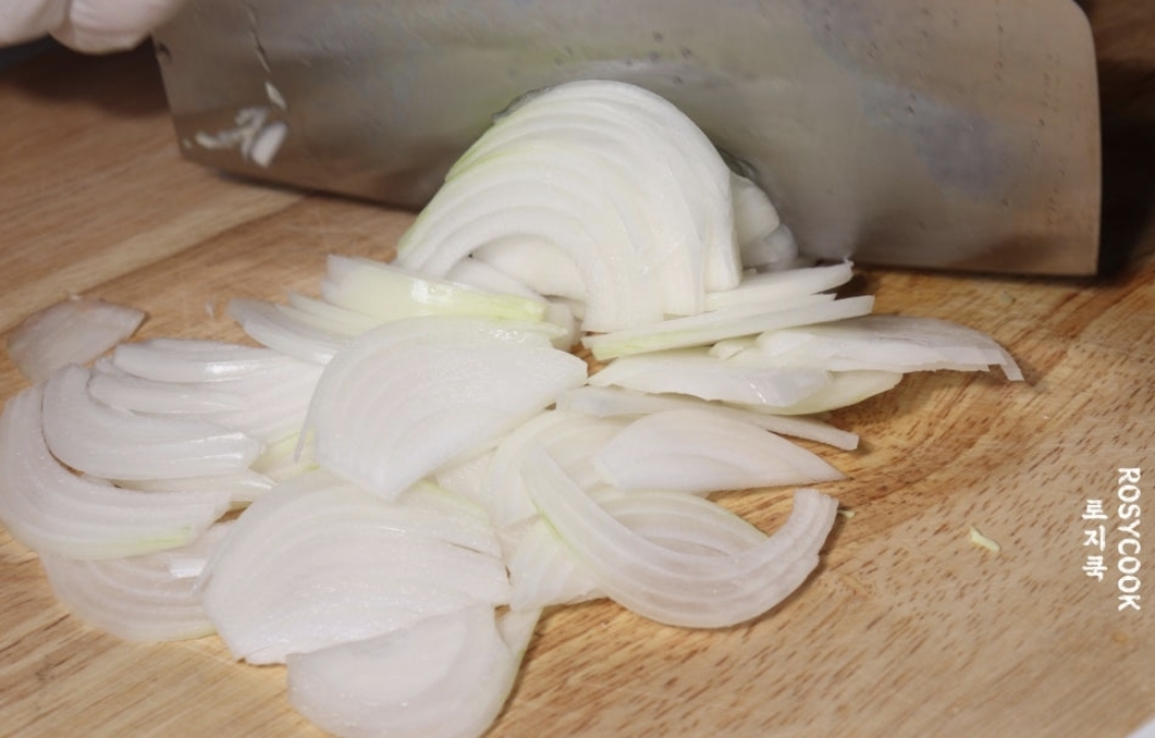 2. 작은 크기의 양파 1개도 채 썰어줍니다.
