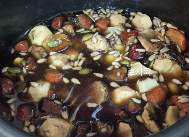 이렇게 하면 번거로운 과정 없이 전기밥솥 약식 레시피로 간단하게 찹쌀 약밥 만들기가 완성됩니다.