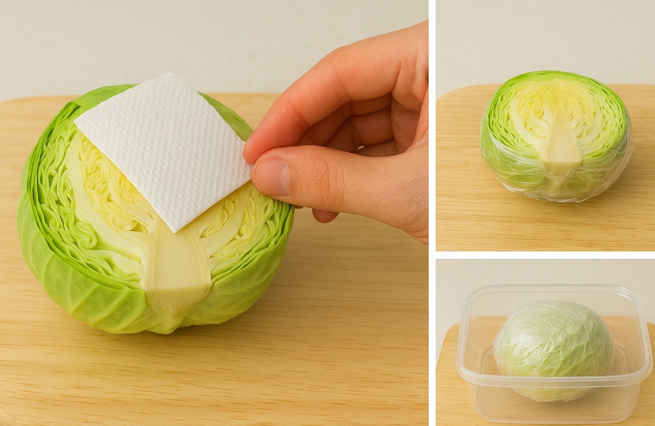 이 방법은 양배추가 건조해지거나 갈변되는 것을 방지해 최대 2~3주간 신선도 유지에 효과적입니다.