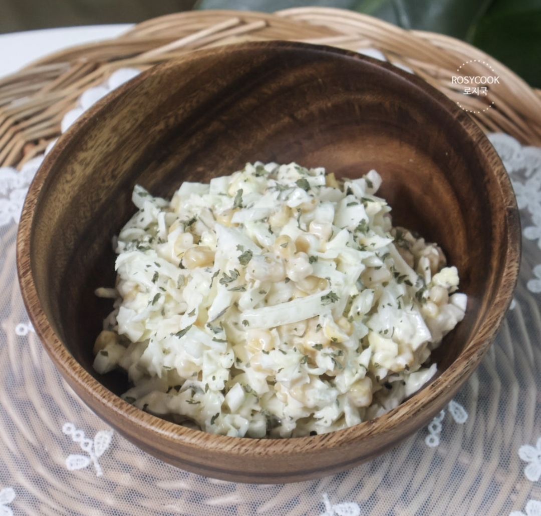 지금까지 양배추 샐러드 드레싱 소스 만들기 콘샐러드 만드는법 소개해 봤습니다. 간단한 레시피 입니다. 아삭하게 씹히는 맛과 톡톡 터지는 식감이 좋습니다.