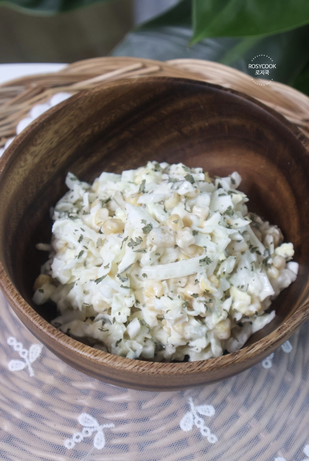 캔옥수수와 양배추, 마요네즈 조합으로 간단하게 만들어서 드실 수 있으니, 샐러드 필요하시다면 이렇게 만들어서 드셔보시길 바랍니다.