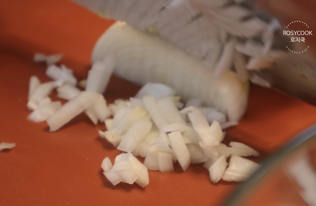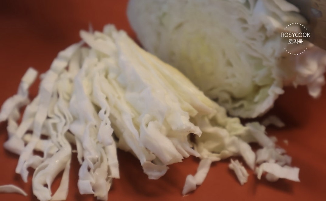 1. 양배추는 1줌 정도 나오게 다져줍니다.