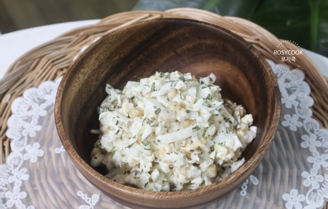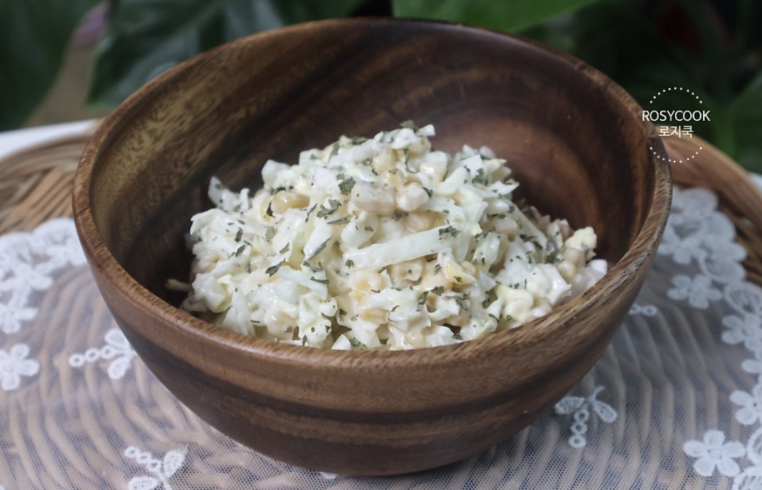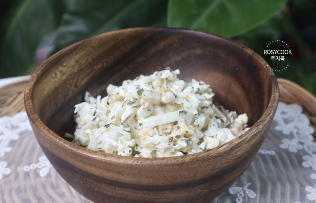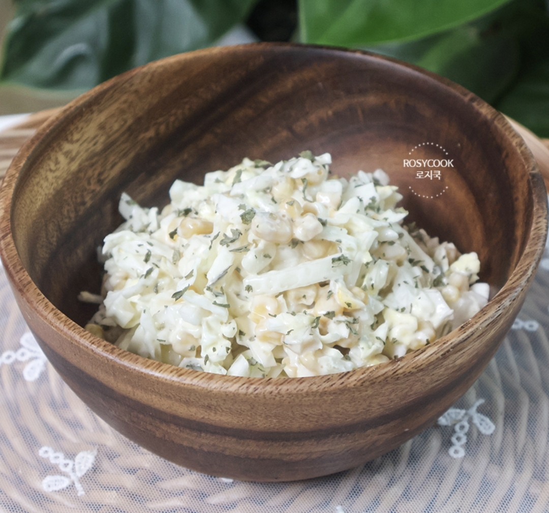캔옥수수와 양배추, 마요네즈 조합으로 간단하게 만들어서 드실 수 있으니, 샐러드 필요하시다면 이렇게 만들어서 드셔보시길 바랍니다.