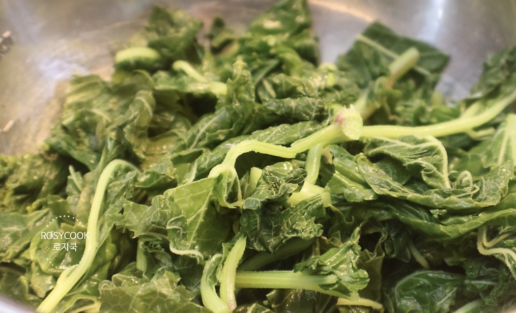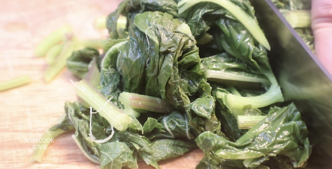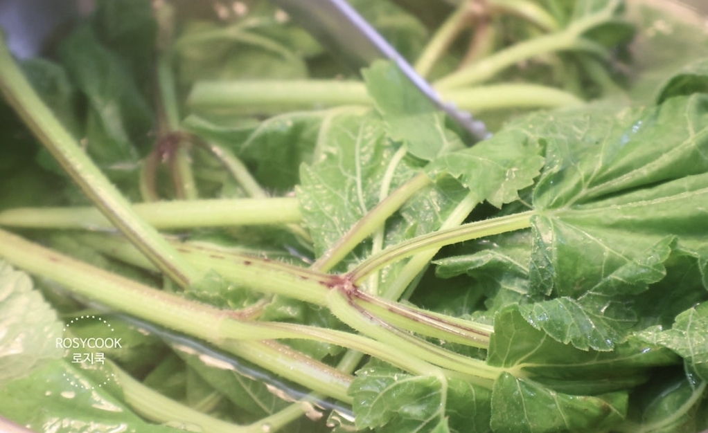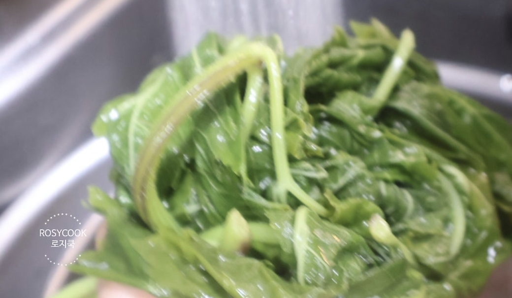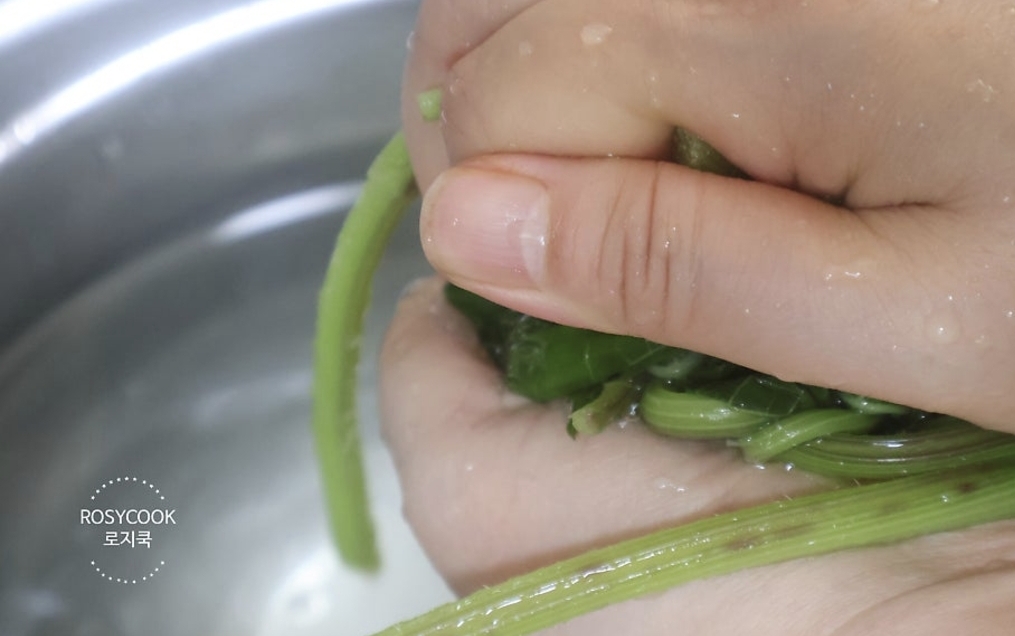 시간이 너무 짧으면 질긴 식감이 살아 있고, 너무 오래 데치면 향이 날아가니 4분이 딱 좋더라고요. 데친 어수리는 찬물에 바로 헹군 뒤, 물기를 꽉 짜서 준비합니다.