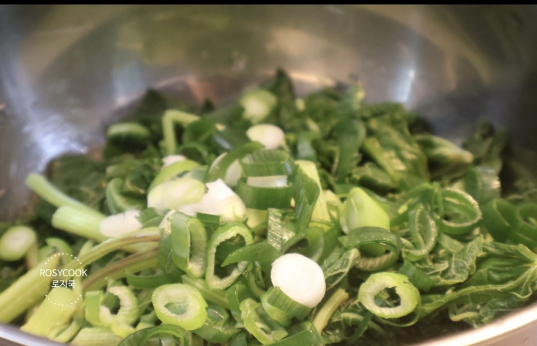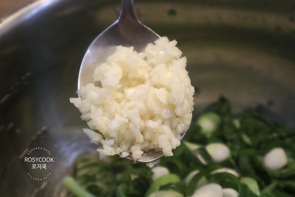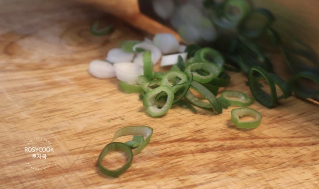대파는 송송 썰고, 데친 어수리는 먹기 좋은 크기로 잘라주세요.