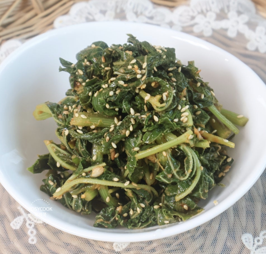 들기름 2 큰 술, 깨 1 큰 술까지 더해 조물조물 무쳐주면 끝이에요. 개인적으로는 된장과 고추장 반반 넣는 이 조합이 가장 맛있더라고요. 된장의 깊은 맛과 고추장의 감칠맛이 어수리의 향긋함을 한층 끌어올려줘요.
