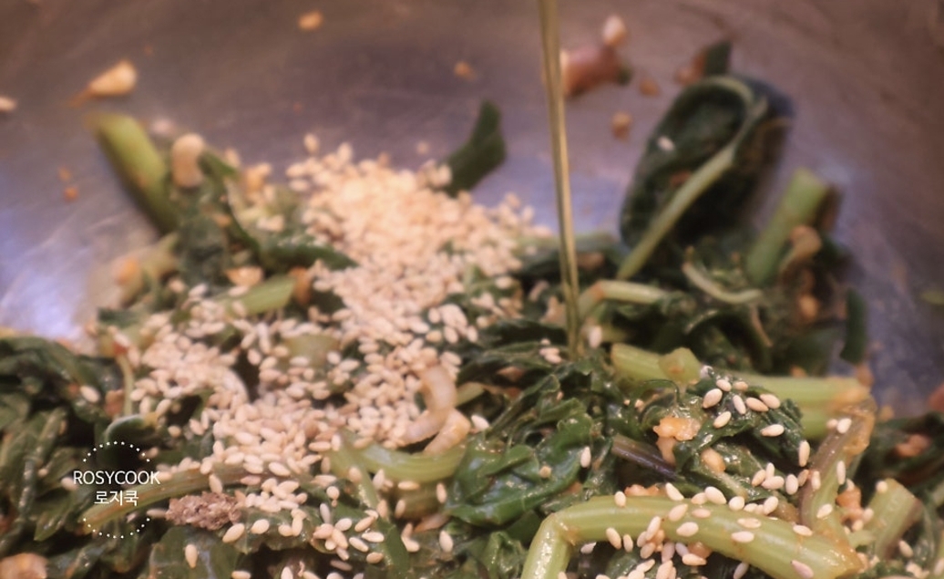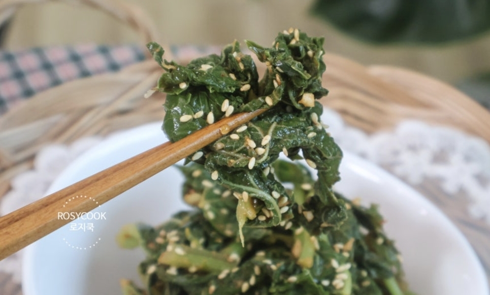 먹기 전에 마지막으로 한 번 더 들기름을 살짝 둘러주면 풍미가 살아납니다. 완성된 어수리 나물 무침은 깻잎처럼 쫄깃한 식감에 향긋한 향이 살아 있어서 입맛 없을 때 밥 한 공기 뚝딱 하게 돼요. 특히 밥 위에 얹어 쓱쓱 비벼 먹으면 별미랍니다.