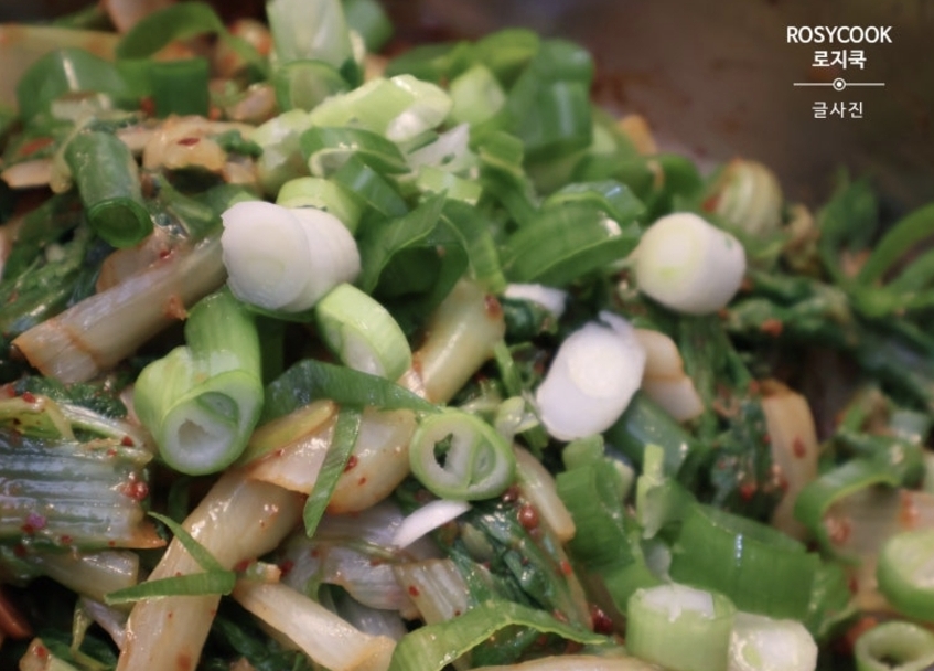 2. 송송 썬 대파 1대를 넣고, 양념장과 함께 조물조물 무쳐줍니다.