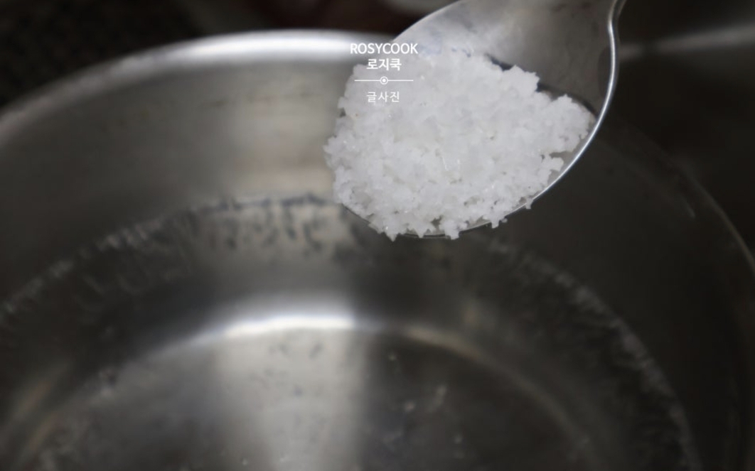 2. 끓는 물에 소금 1/2 큰 술을 넣어줍니다. 물은 엄나무순이 충분히 잠길 정도로 끓여주시면 됩니다.