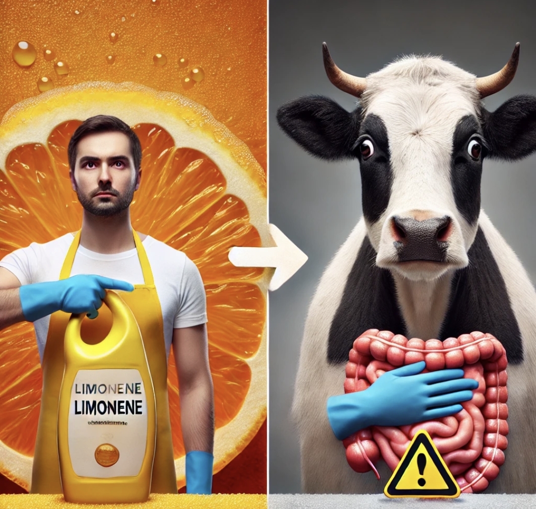 오렌지 껍질에는 리모넨(Limonene)이라는 성분이 들어 있어 기름때 제거 등에 유용하지만, 가축이 먹으면 해로울 수 있습니다.