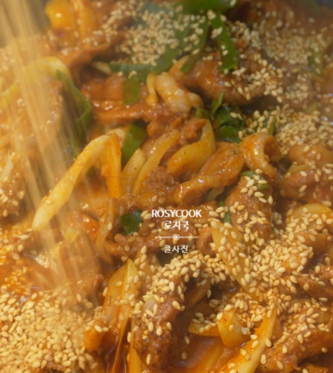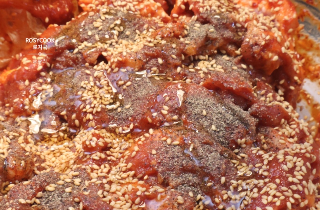 15. 마지막으로 올리고당을 둘러준 후, 깨를 뿌려 마무리 해줍니다.