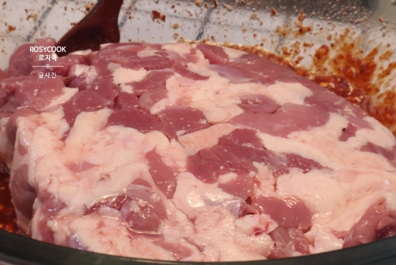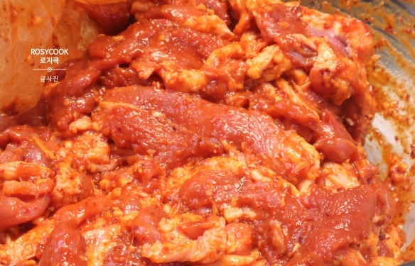 9. 생오리고기를 넣고 잘 버무려줍니다.
