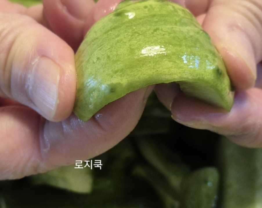 30분 정도 절이면 오이가 유연하게 휘어질 정도가 됩니다.