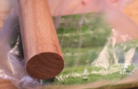 3. 지퍼백에 넣고 방망이로 쳐서 적당히 으깨줍니다.