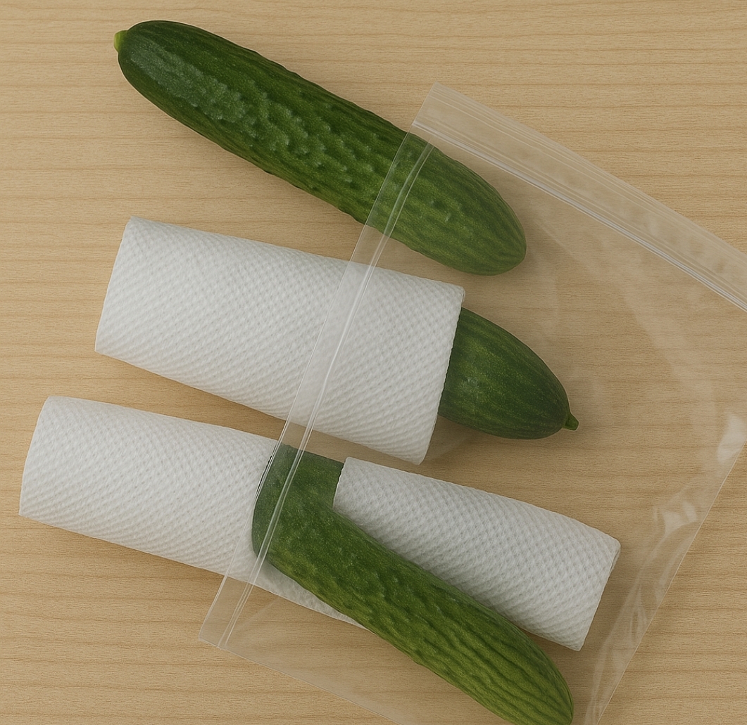오이 보관 방법 ① 키친타월+비닐팩 활용
