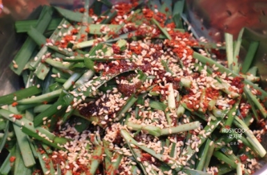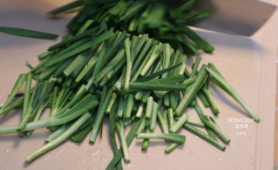 10. 류수영 님은 영양부추를 쓰셨지만, 저는 일반 부추를 써봤습니다. 3cm ~ 4cm 크기로 썰어줍니다.