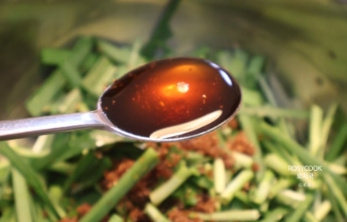 4. 아이스크림 스푼을 사용해서 양념 소스를 살짝 떠주고, 소고기에 전체적으로 뿌립니다.
