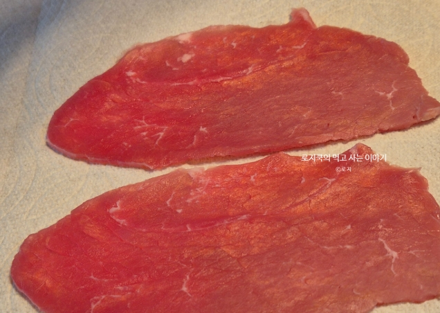 제사상에 올릴 경우 미리 구워야 하니, 고기를 너무 두껍게 썰지 말고 얇게 준비하는 것이 좋습니다. 육전용 소고기로 나온 걸 구매하셔도 좋고요.