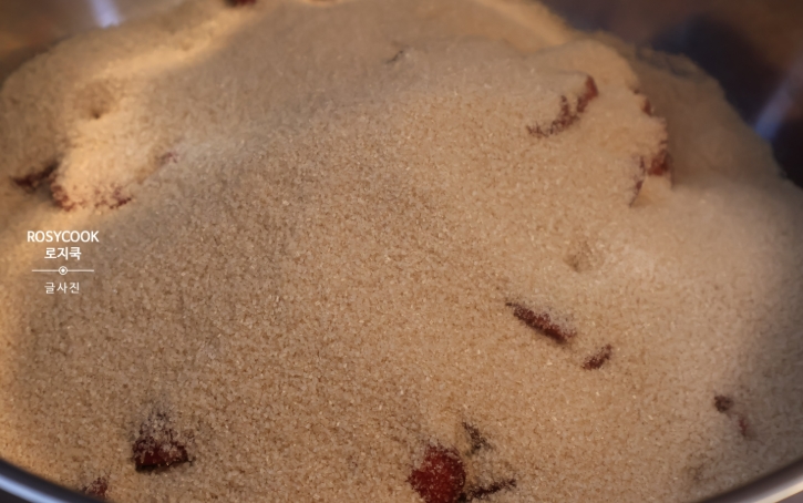손질한 피자두 1kg에 설탕 1kg을 넣고 골고루 버무려 주세요.