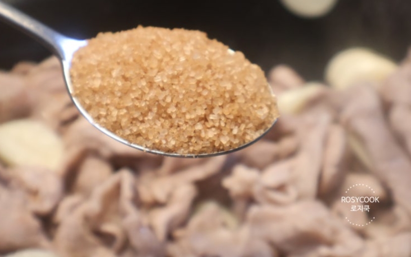 기존 레시피는 삼겹살 300g 기준이지만, 저는 앞다리살을 사용했습니다. 양에 맞춰 양념을 조절했습니다.