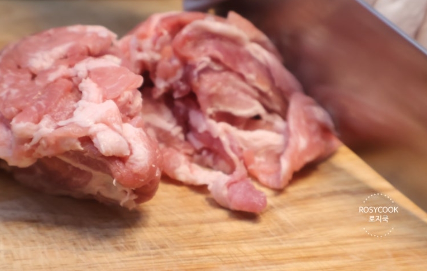 4. 앞다리살을 먹기 좋은 크기로 썰어줍니다.