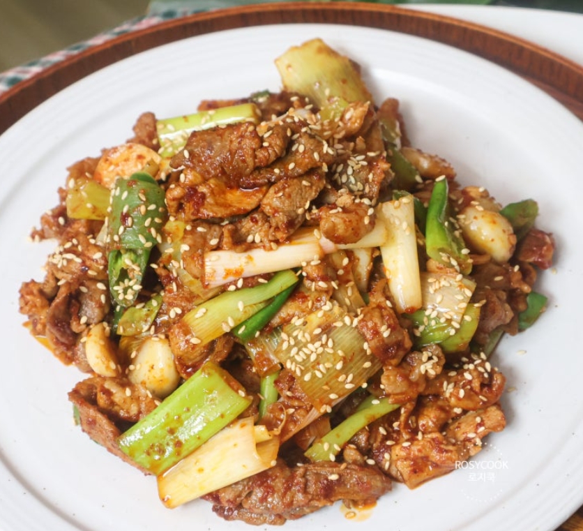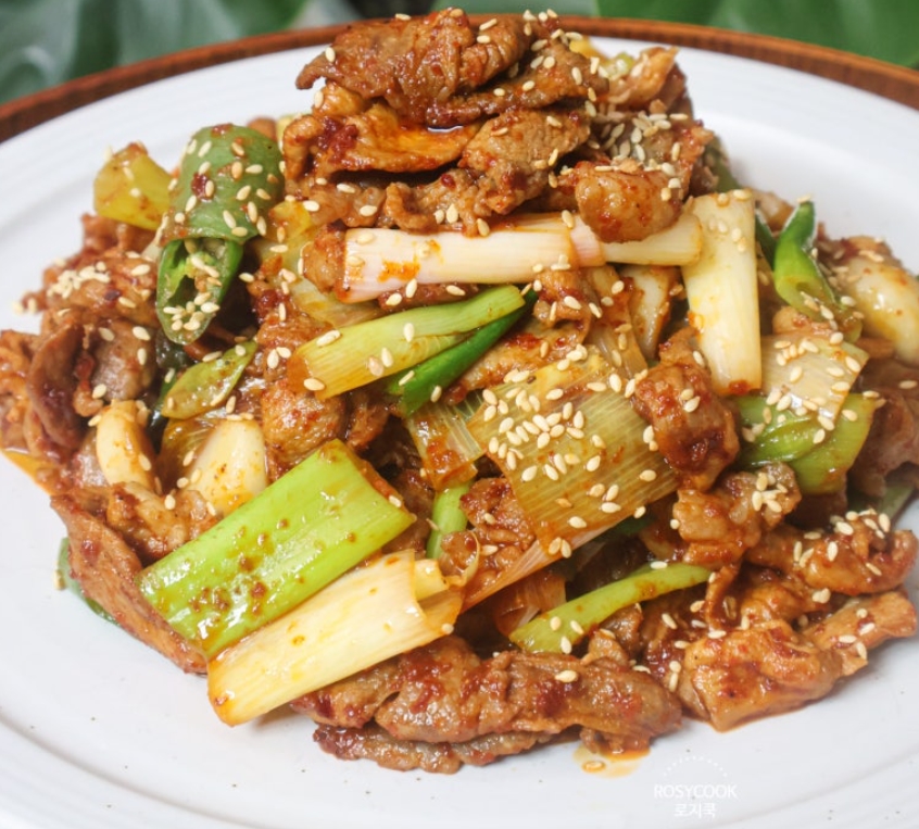 지금까지 제육볶음 맛있게 만드는법 소개해 봤습니다. 고춧가루 베이스의 양념이라 깔끔한 맛이 인상적이고, 바로 볶아서 조리할 수 있기 때문에 조리 시간도 길지 않습니다.