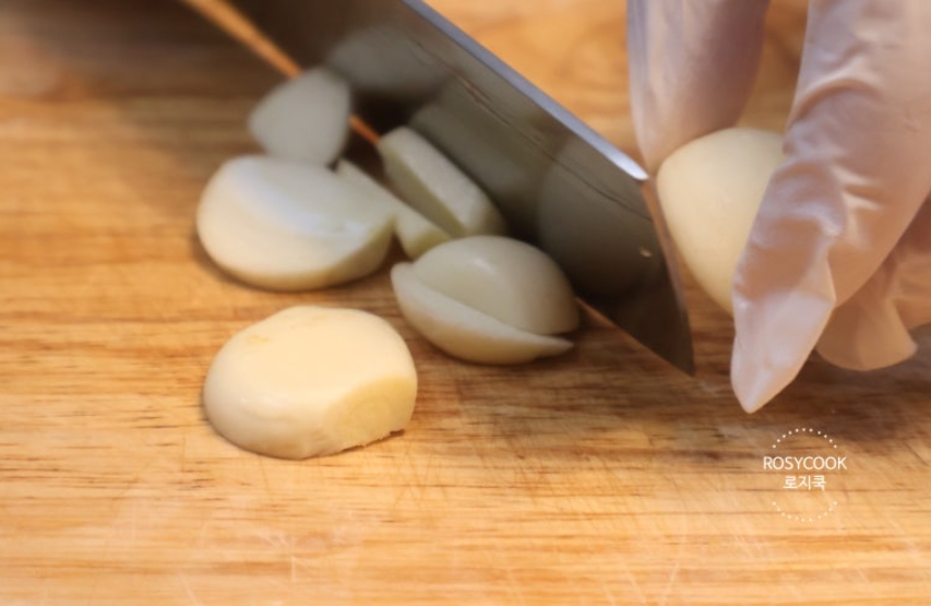 3. 마늘을 적당한 두께로 썰어줍니다.