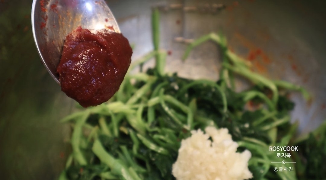 5. 간 마늘 1/2 큰 술, 고추장 1/2 큰 술을 넣어줍니다.