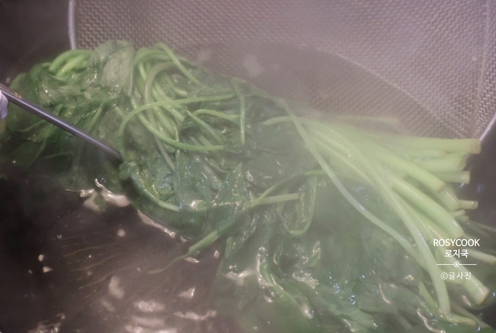 2. 1분 정도 살짝 데쳐주고, 건져서 찬물에서 헹궈줍니다.