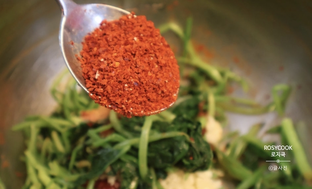 7. 고춧가루 1 큰 술과 매실청 1 큰 술을 넣어줍니다.