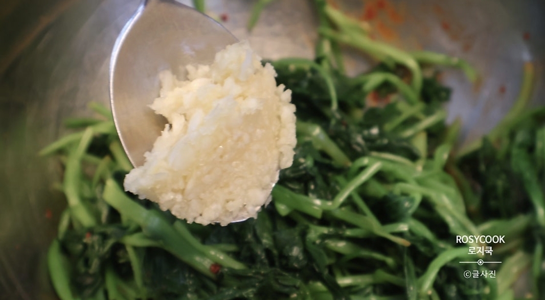 5. 간 마늘 1/2 큰 술, 고추장 1/2 큰 술을 넣어줍니다.