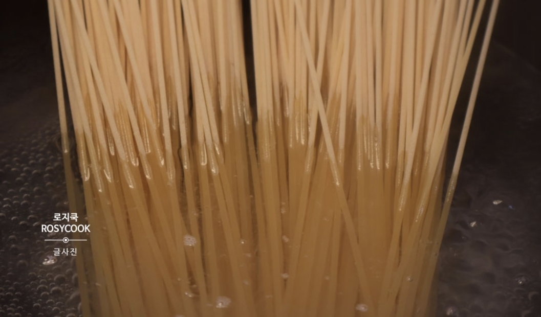끓는 물에 소금 1/3큰술을 넣고 파스타 면 200g을 삶아주세요.
