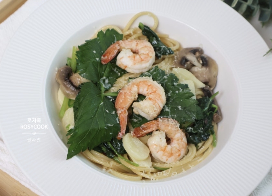 오늘은 향긋한 참나물과 고소한 들기름을 활용해, 특별한 새우 오일파스타 들기름 파스타 만들어 봤어요.