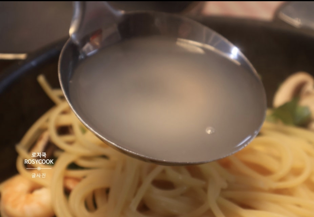 면이 익으면 면수 2국자를 따로 덜어 놓고, 면은 체에 받쳐 물기를 제거하세요.
