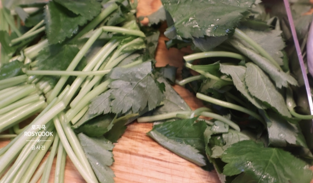 참나물은 밑동을 정리한 뒤 큼직큼직하게 잘라두세요.