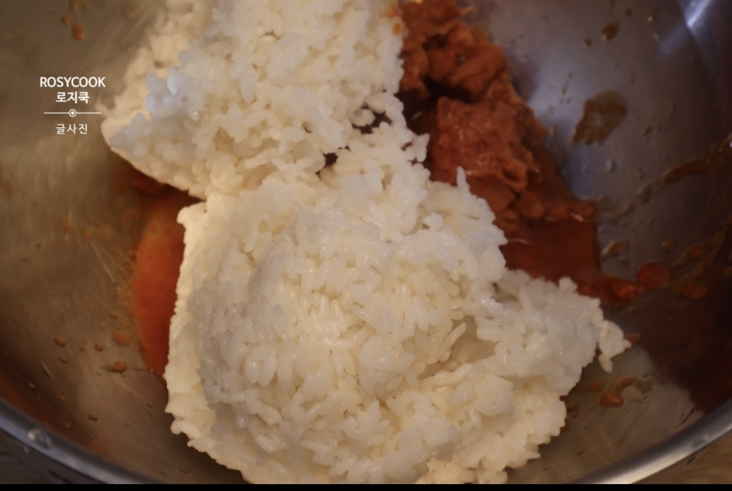 2. 밥 1.5공기를 넣고 잘 비벼줍니다.