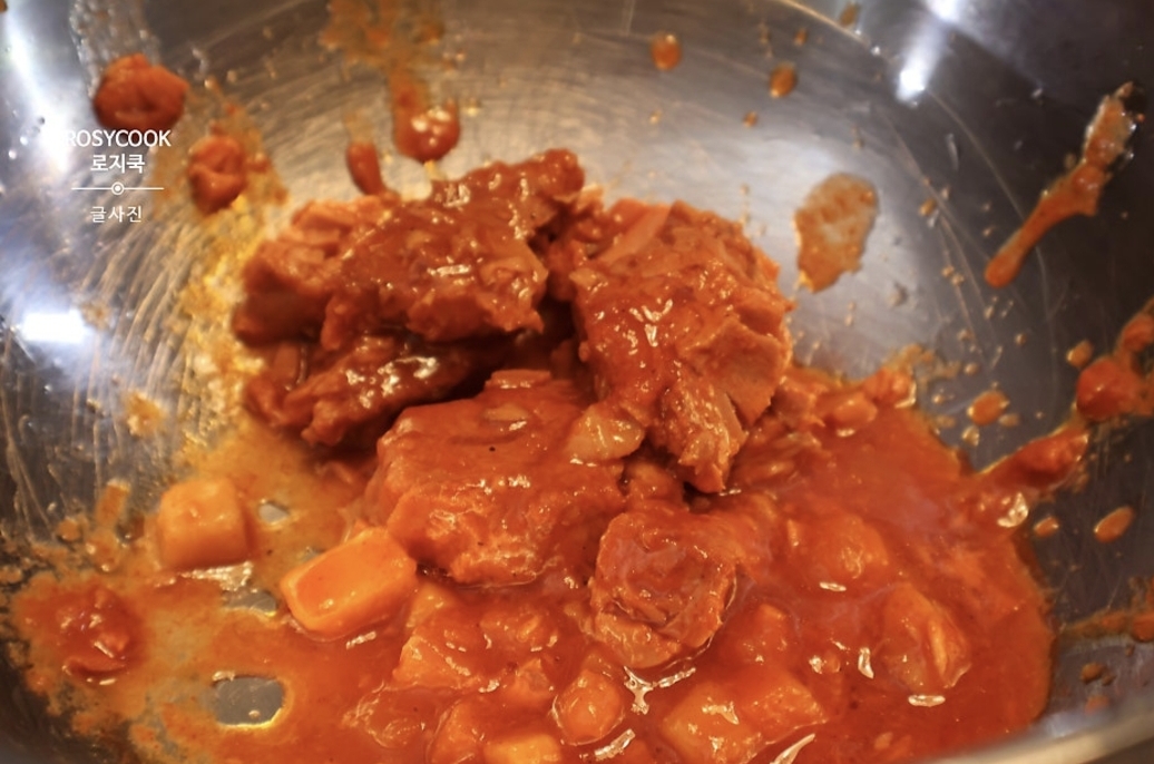 1. 고추참치 캔 150g을 볼에 부어줍니다.