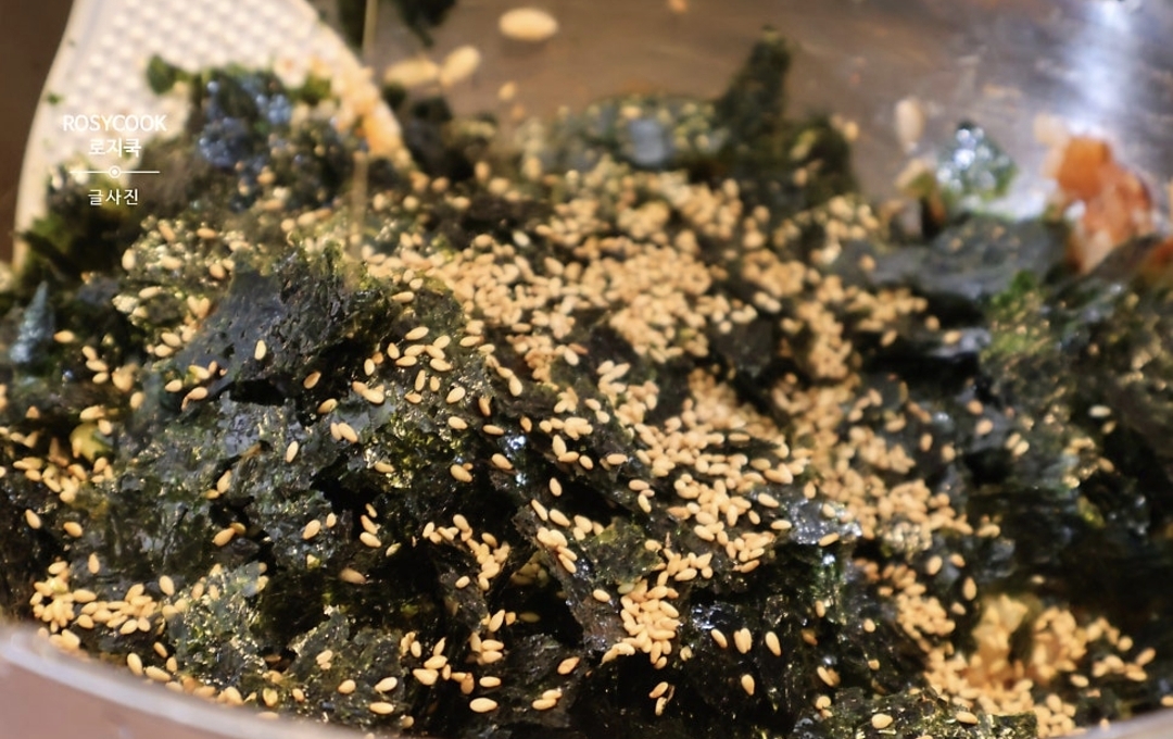 4.조미김 40g을 부순 후 넣어줍니다.