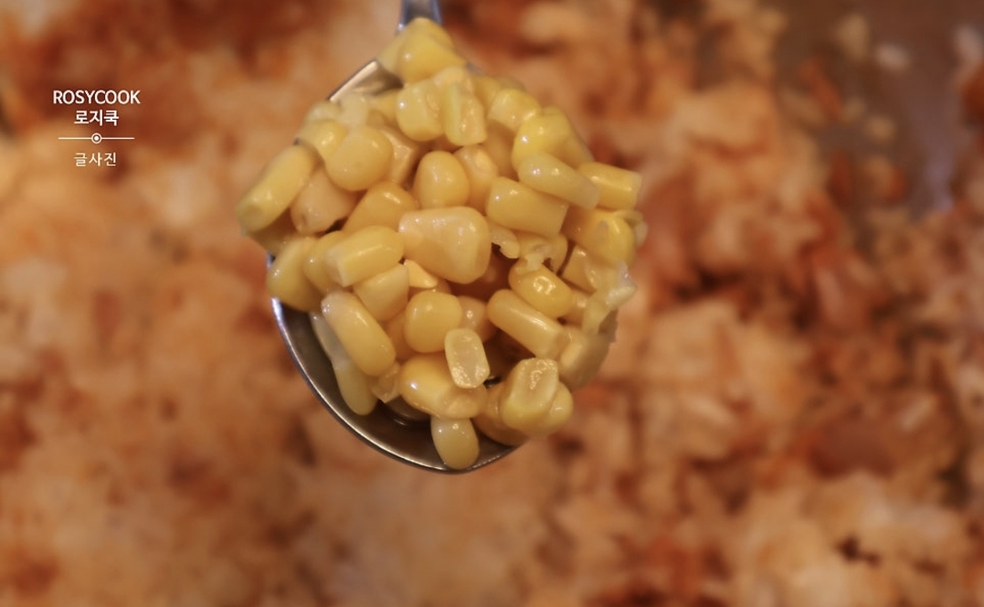 3. 캔옥수수의 국물을 빼고, 3 큰 술을 넣어줍니다.