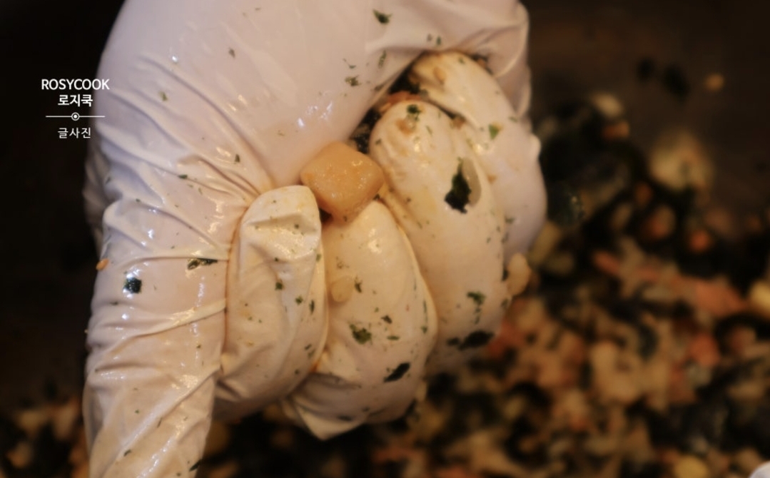 6. 밥을 먹기 좋은 크기로 뭉친 후, 동그랗게 굴려줍니다.