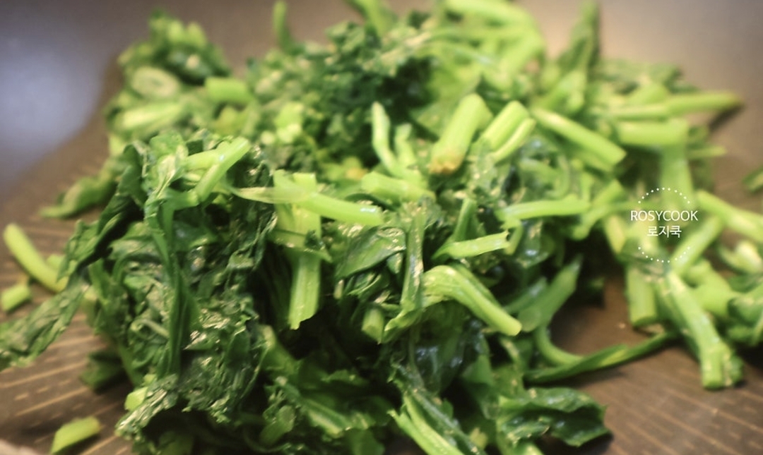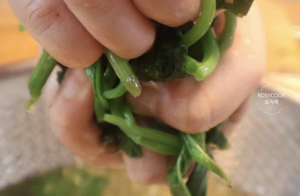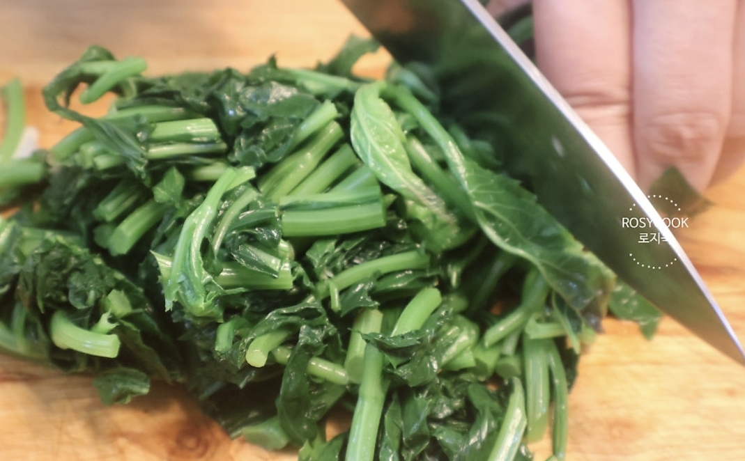 3. 물기를 꽉 짠 후, 먹기 좋은 크기로 썰어줍니다.