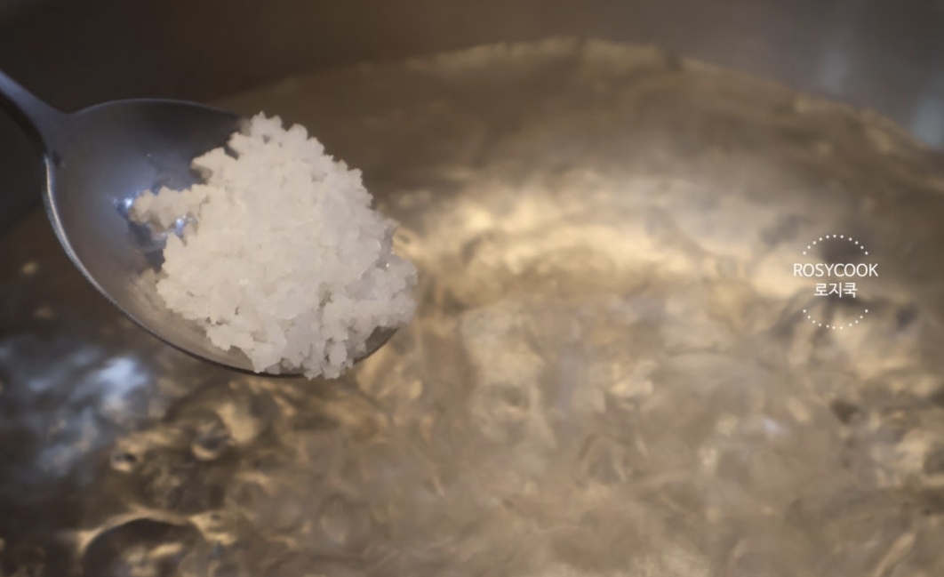 1. 끓는 물에 소금 1/2 큰 술을 넣어줍니다.