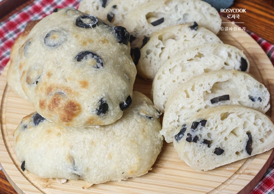 지금까지 올리브 치아바타 빵 무반죽 치아바타 만드는 법 소개해 봤습니다. 발효하는 시간이 걸리긴 하지만 만들기는 어렵지 않은 빵입니다.