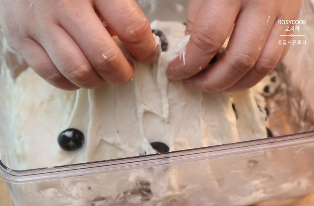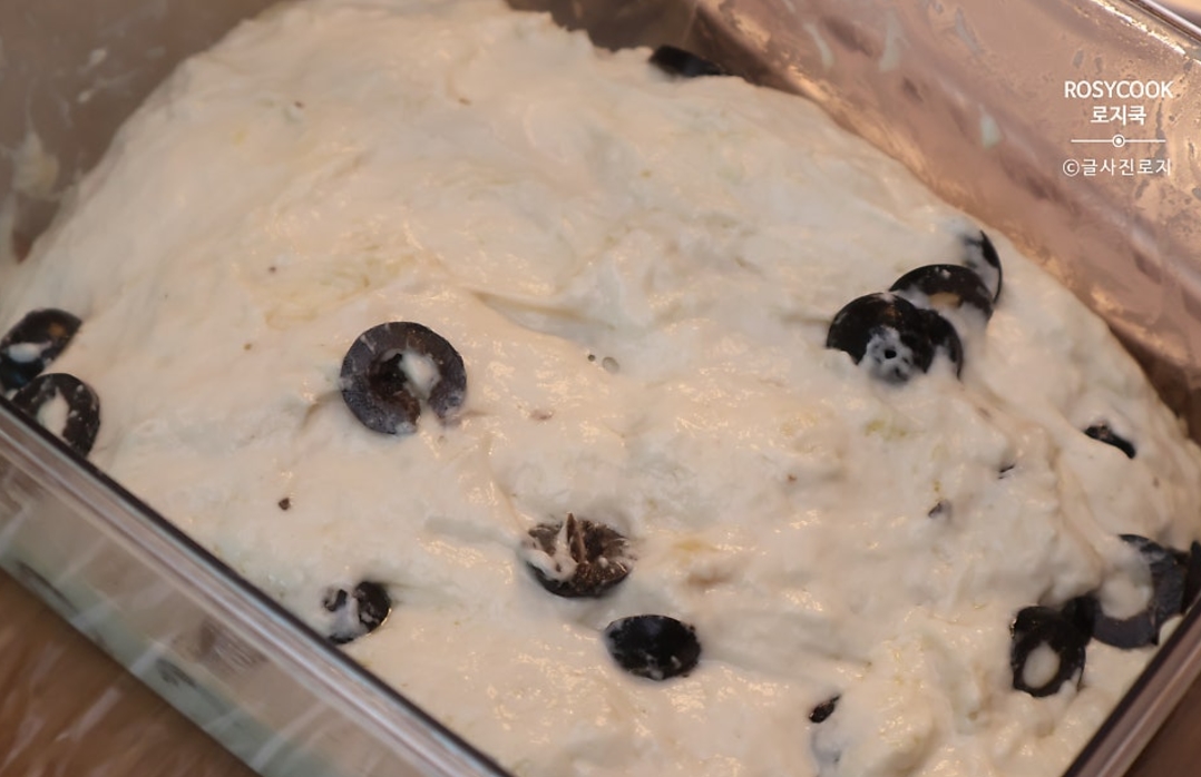 그래서 샌드위치 만들어서 먹기에 좋은 빵인 것이죠. 물론 식감이 좋고 고소하면서도 담백해서 그냥 먹기도 맛있는 빵이긴 합니다. 올리브까지 넣어 씹히는 식감까지 살린 무반죽 치아바타 만들기 시작해 보겠습니다. 발효 시간이 좀 걸리긴 하지만 반죽 조합 자체는 간단해서 어렵지 않습니다.