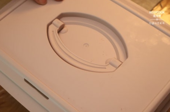 16. 밀폐용기를 그대로 뒤집어서 꺼내줍니다.